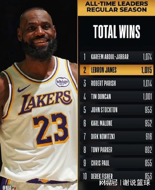 詹姆斯常規(guī)賽生涯總勝場數(shù)1015場 超越帕里什升至歷史第二