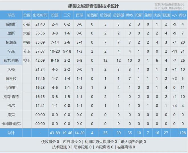 楊瀚森上場時(shí)間和助攻數(shù),均是生涯最高,體能有所進(jìn)步??齑皥霭?比4碾壓混音,小楊的后場籃板保護(hù)還是要注意。最后看看數(shù)據(jù):
