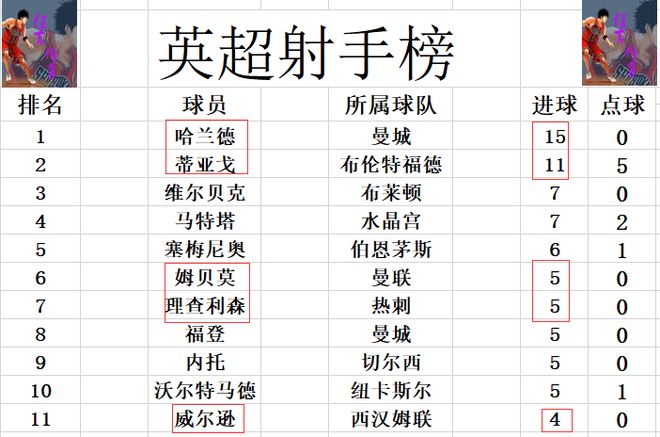 射手榜方面,哈蘭德15球領(lǐng)跑,蒂亞戈11球緊隨其后,維爾貝克,馬特塔7球并列第3。姆貝莫今天沒有進(jìn)球,還是和理查利森,福登,內(nèi)托等人5球剛好擠入前十。威爾遜今天也未能進(jìn)球,還是差1球才能進(jìn)前十。